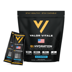 Whether you’re in the field, training hard, or pushing through long, demanding days, B1 helps you stay sharp, hydrated, and ready. Our Blue Raspberry flavor makes staying hydrated easy—even when conditions aren’t.